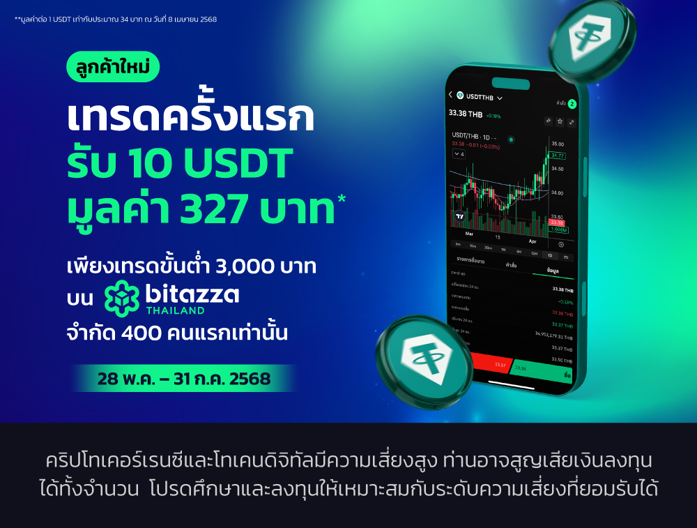 ลูกค้าใหม่ - เทรดครั้งแรกรับ 10 USDT มูลค่า 327 บาท*