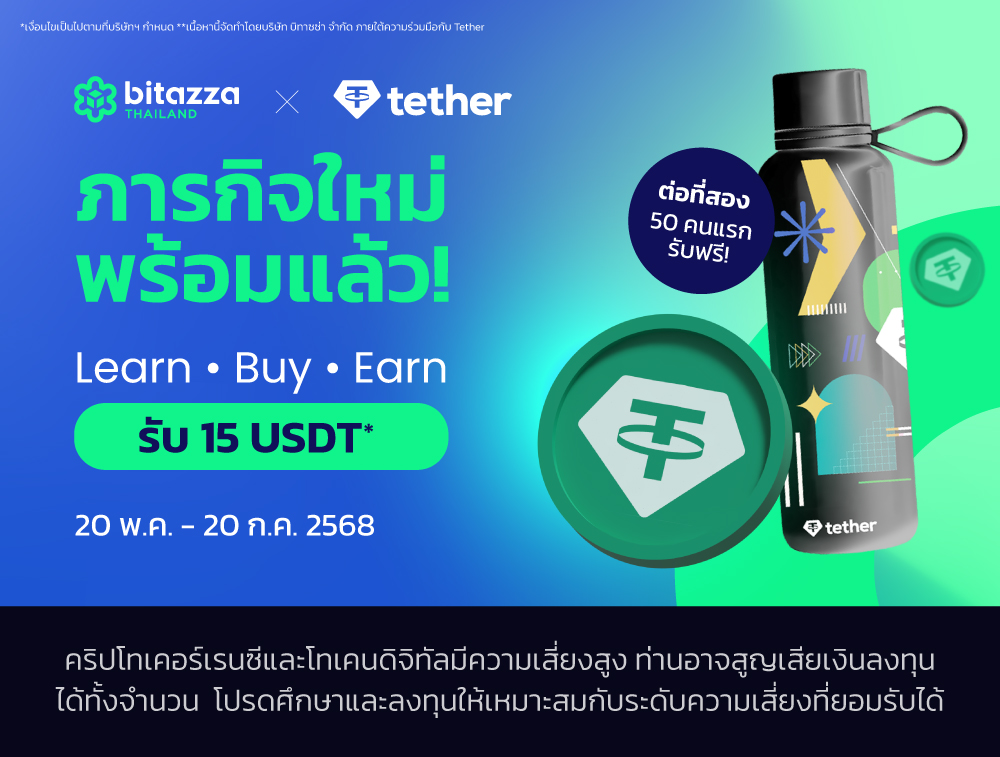 Bitazza Thailand x Tether: Learn, Buy & Earn รับเลย 15 USDT!